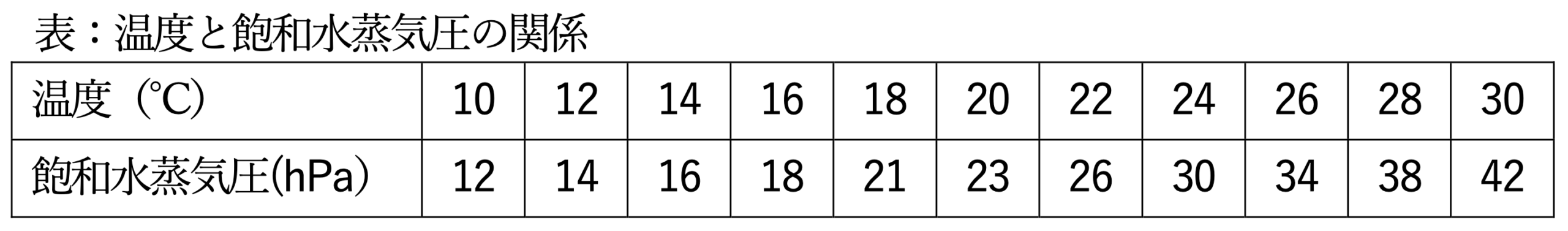 初期状態での温度は 18 ℃ なので、下表を用いると、対応する飽和水蒸気圧は 21 hPa だと分かります。